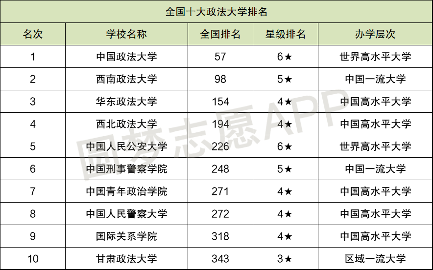 一、全国十大政法大学排名