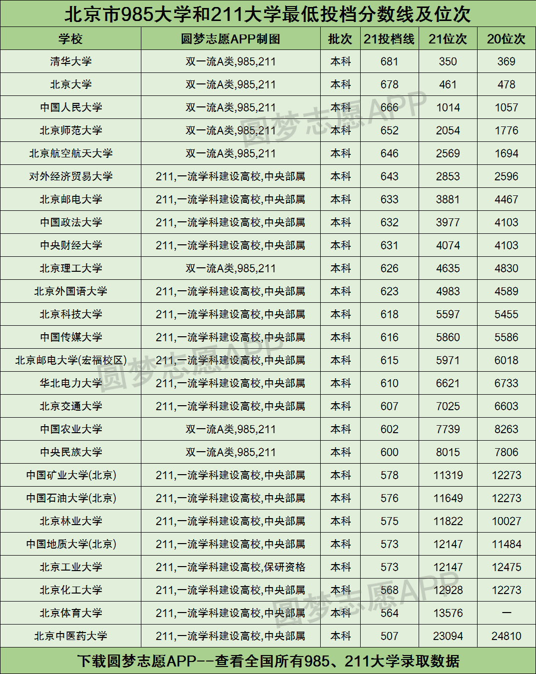 北京市有几所985高校和211大学,分别是哪几所?位于北京市什么地方?在全国排名第几?本文将为大家解答这些问题,并附上北京市内的985和211学校的本科最低录取分数线及位次排名。
