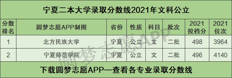 二、宁夏二本大学录取分数线2021年排名(文科公立)