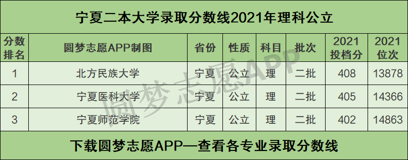一、宁夏二本大学录取分数线2021年排名(理科公立)