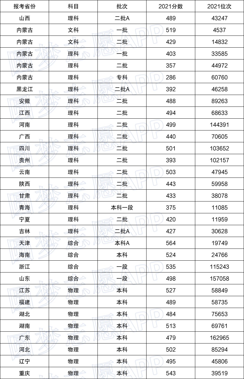 下图是潍坊医学院2021年在各省市区的最低录取分数线以及录取批次情况:
