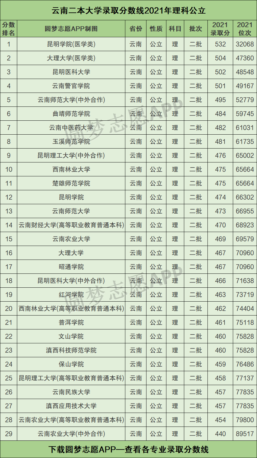 2021年高考云南省所有二本大学的最低录取分数线排名榜单一览表,价值巨大。本文将奉上文理科版的云南省全部公立二本院校最低分数线排行榜,希望能对2022届云南高考生有所帮助!