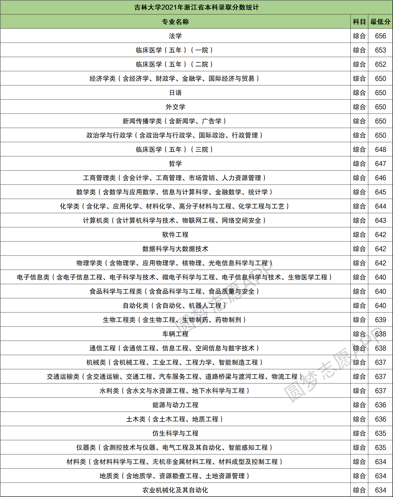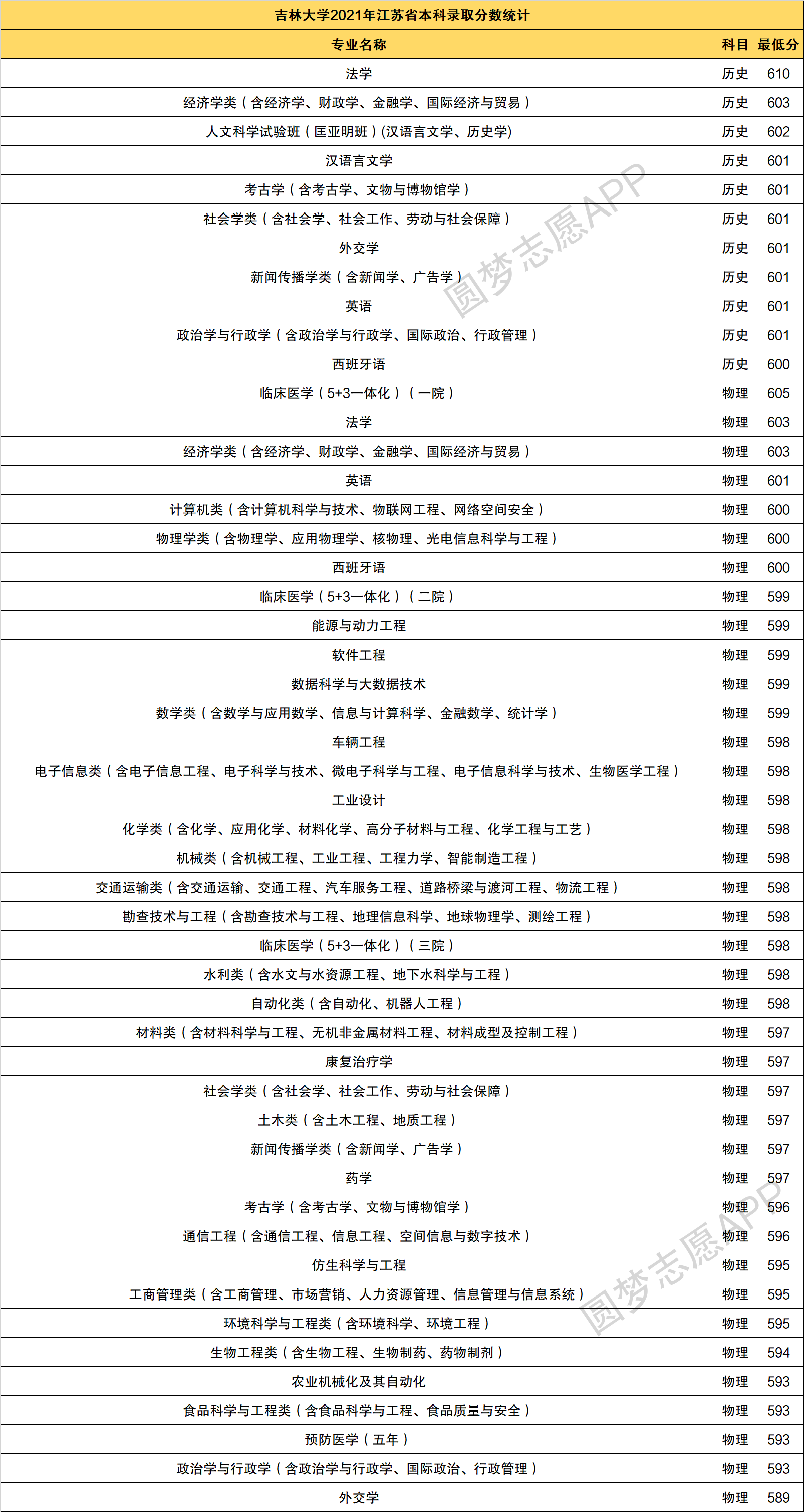 小编还整理了2021年吉林大学在吉林省的最低录取分数线: