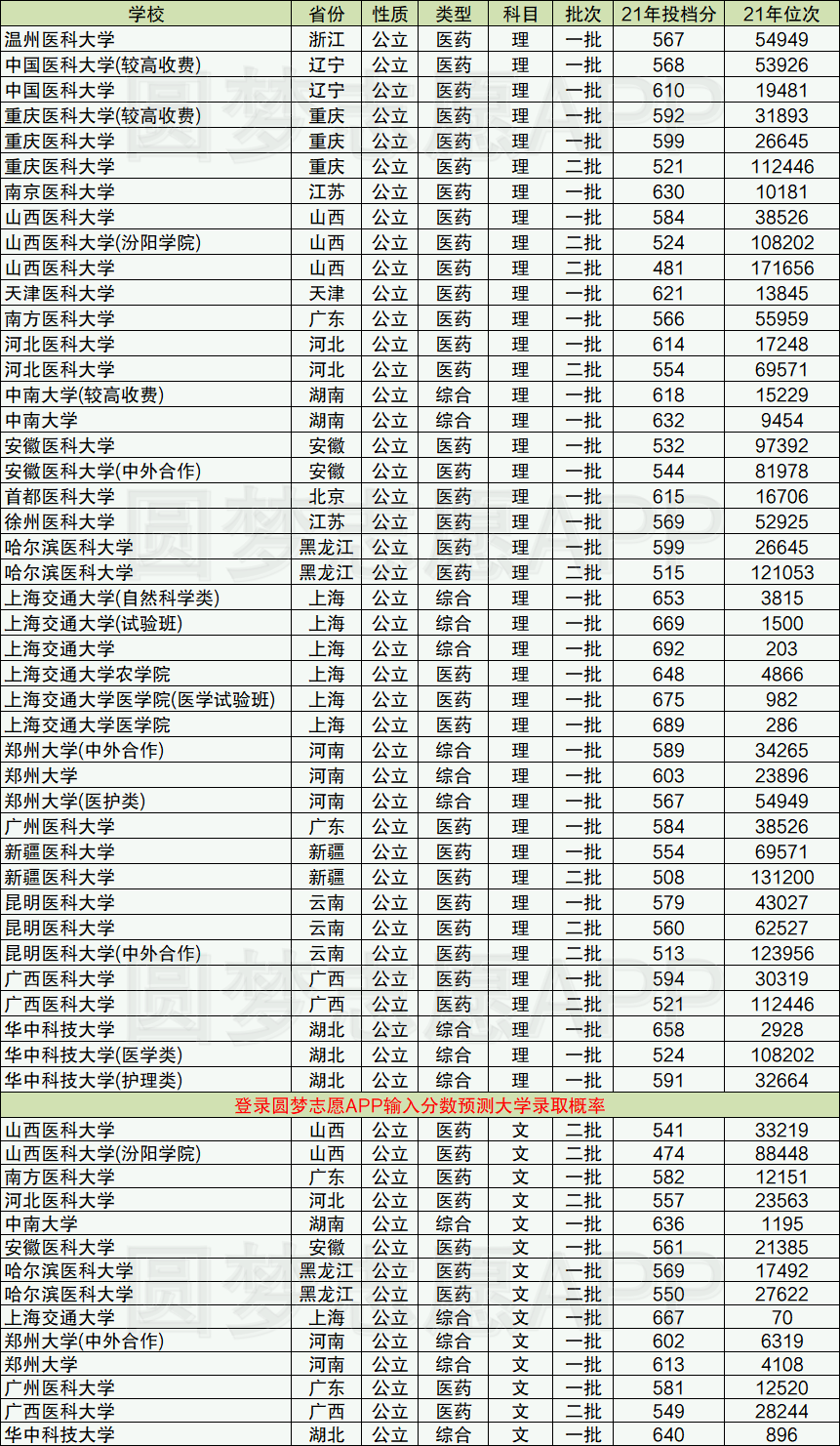 从学科评估结果来看,排名前10的大学依次是上海交通大学、浙江大学、北京协和医学院、复旦大学、北京大学、首都医科大学、华中科技大学、中南大学、中山大学、四川大学。其中除了北京协和医学院和首都医科大学其他都是985高校。虽然这两所学校不是985、211,但收分要高于部分985、211大学,尤其是北京协和医学院,作为“中国医学殿堂”历年来分数线都比较高。