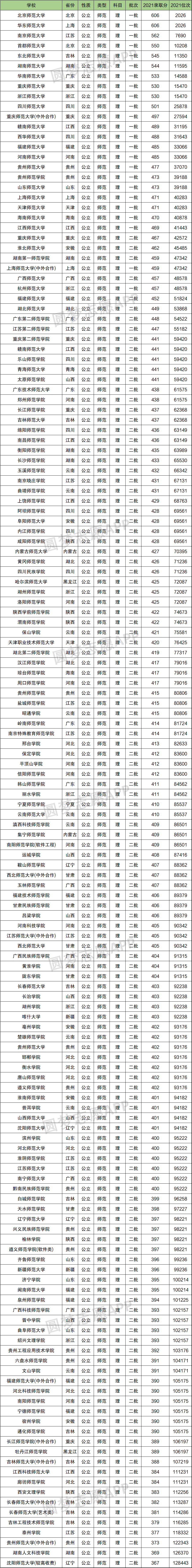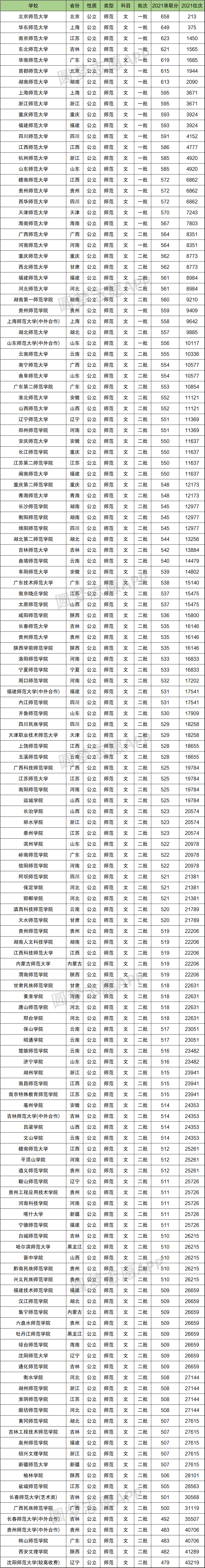 注意:本文整理的是公办师范类院校的录取数据,民办师范院校由于学费较贵一般大家不会作为首选,所以未整理出详细数据。