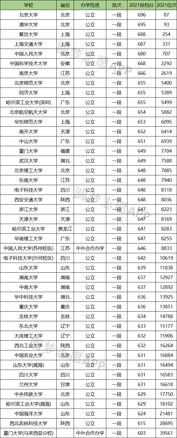 对于浙江省考生来说,39所985大学中,最容易考的莫过于厦门大学(马来西亚分校),该校2021最低投档分为603分,但由于是中外合作办学,学费会较高,家庭条件一般的考生请慎重考虑。