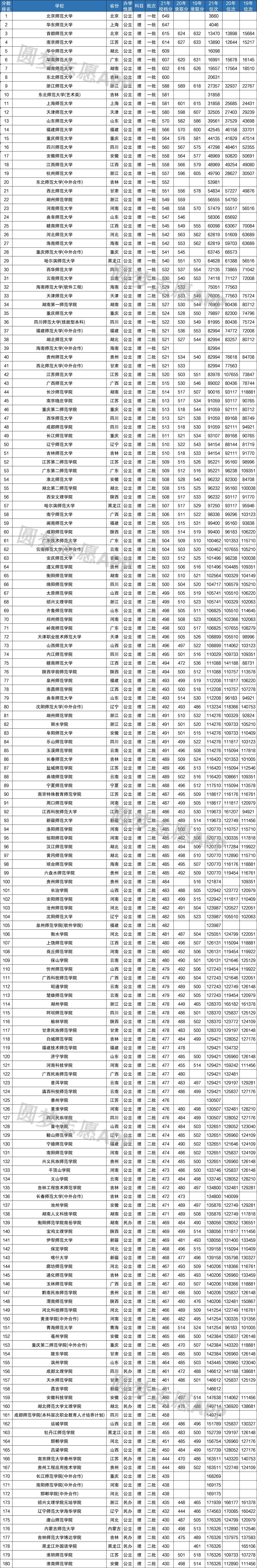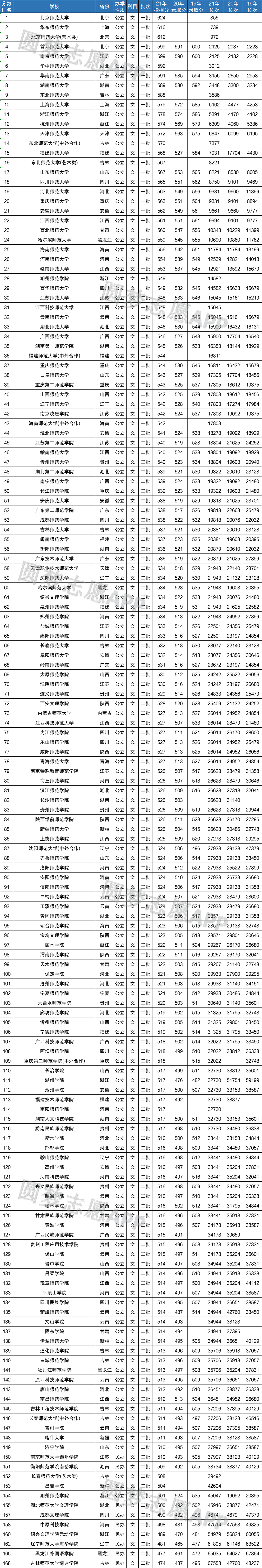 在数据中我们不难发现,在师范类高校中录取分最高的大学是北京师范大学,2021年投档分为649分,位次在3660位。北京师范大学不管是在文科还是理科都是录取分最高的一所师范类高校,由此可看出该校的实力是很强悍的。