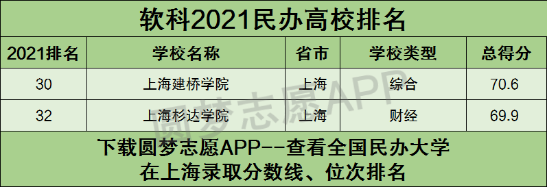 根据软科2021民办高校排名,小编为大家整理出了上榜的上海市民办本科大学在全国高校中的排名。具体见下图: