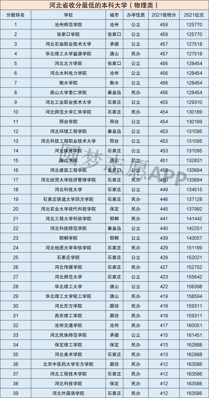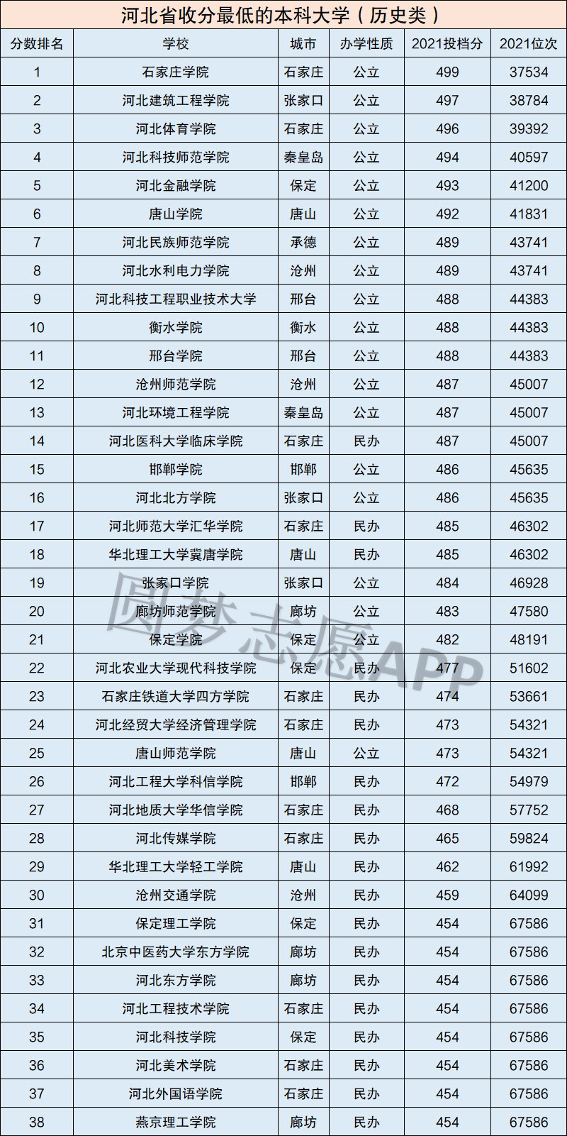 2021年河北省收分最低的本科大学(正规大学)