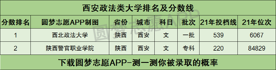 根据上文可知,无论是文科还是理科,位于西安市内且录取分数线最高的一所政法类大学都是西北政法大学。该校隶属于陕西省,位于陕西省西安市,目前拥有3个国家级特色专业,具体名单如下。