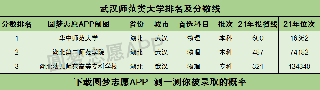 一、武汉师范类大学排名及分数线(物理类)