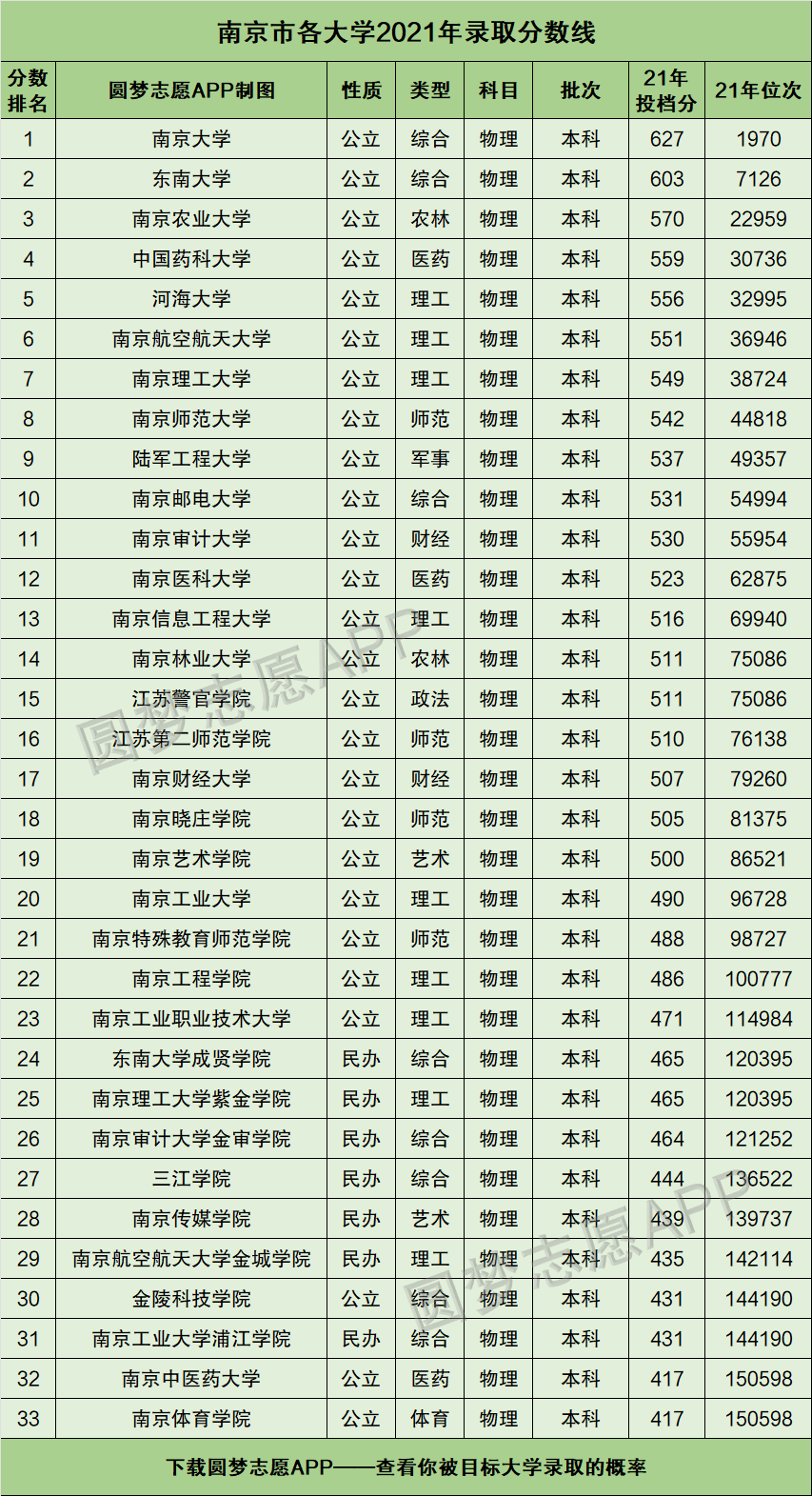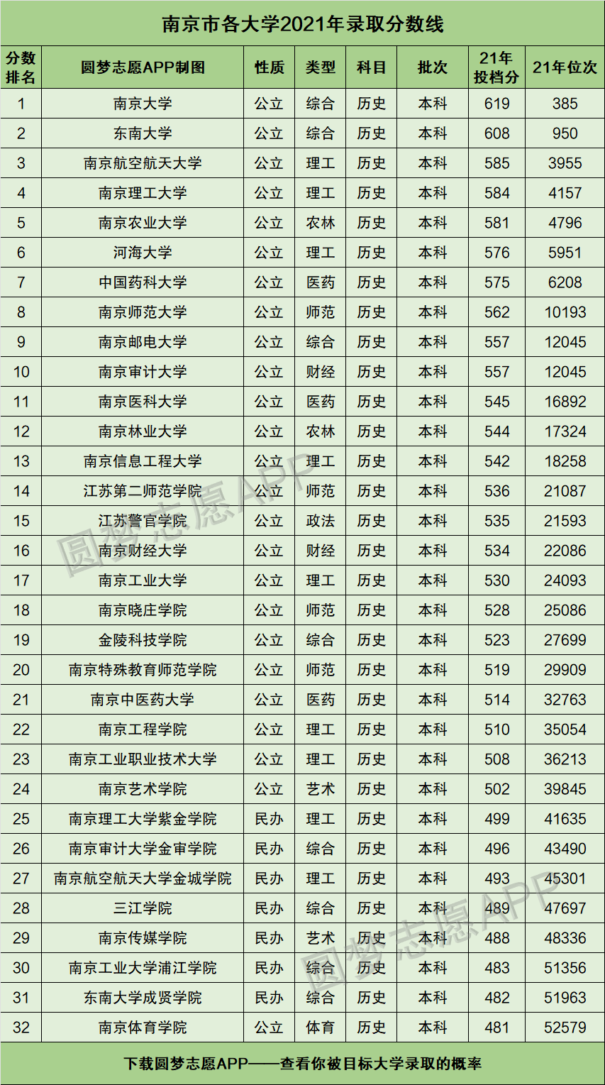 南京各个大学2021年最新录取分数线排名,是每一位南京即将参加2022年高考的同学所必备的资料。本文将为大家奉上这份数据,希望南京的每一位高三同学都能圆梦大学、被南京的好大学录取!