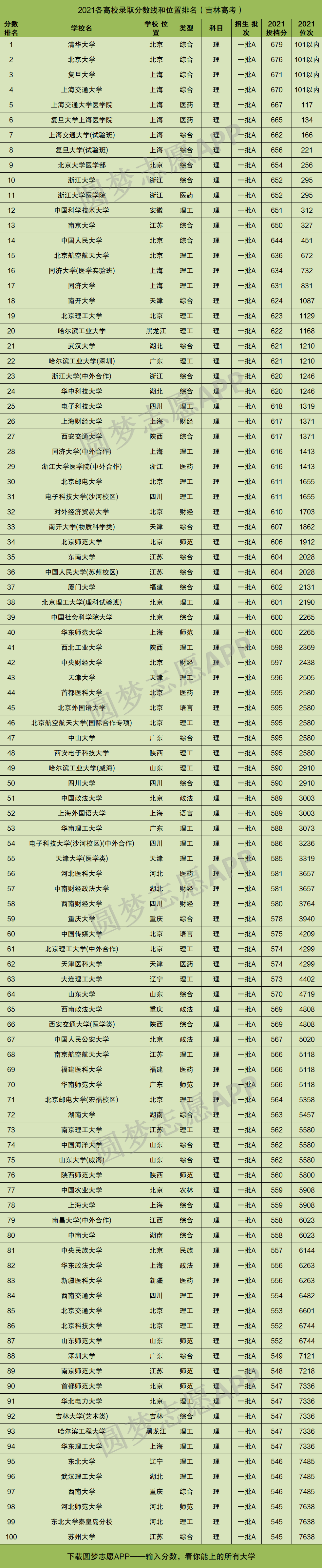 友情提醒:如果你想看全国高校2021年在吉林省高考完整版录取分数线排名,并其Excel文档,可以在手机应用市场获取!