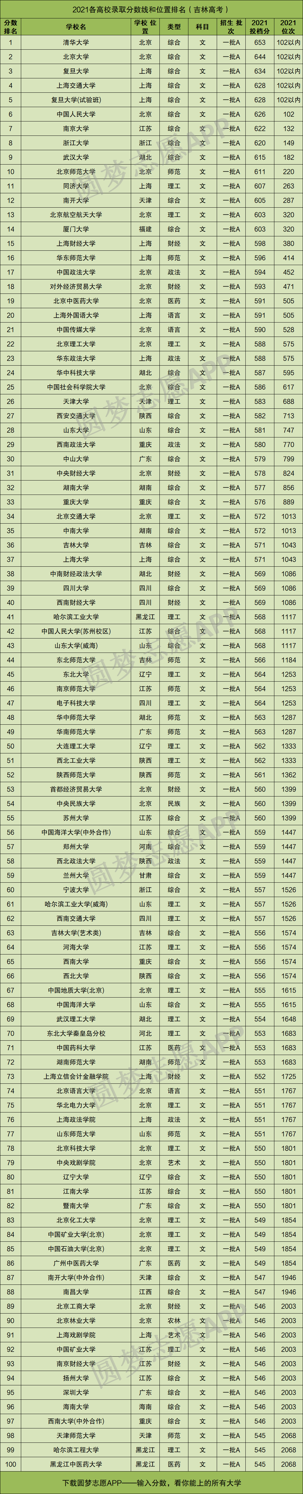 2021各高校在吉林录取分数线和位置排名,是接下来这一年里无数吉林省高三考生关注的重点。因为不少同学都非常好奇,2021年高考在吉林省录取分数线最高的前100强大学是哪些?对于吉林省的高考生来说,哪些省份的哪些大学最难考?那么,本文就将为大家奉上答案!