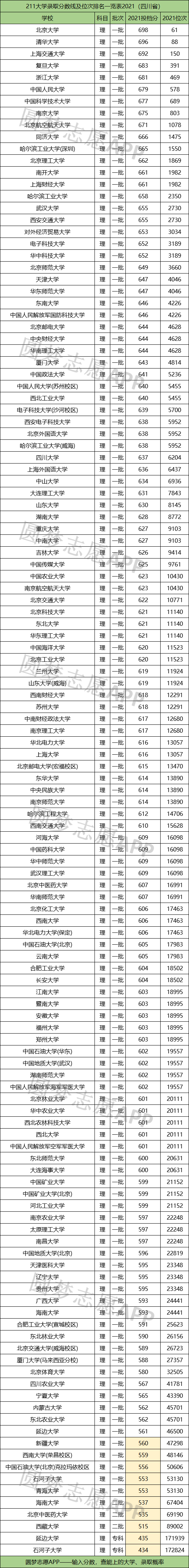 下面是2021年211大学在四川理科录取分数线及位次一览表,想了解211大学在更多其他省份录取分的考生可前往。同时文末附有图片数据的表格链接,有需要的考生可以保存以便下次查看。