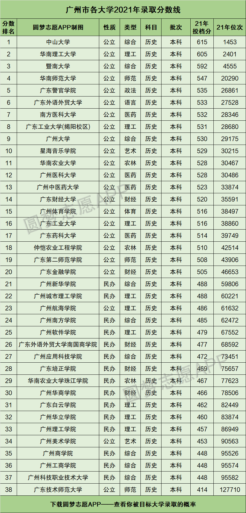 二、广州各大学2021年录取分数线(首选历史)