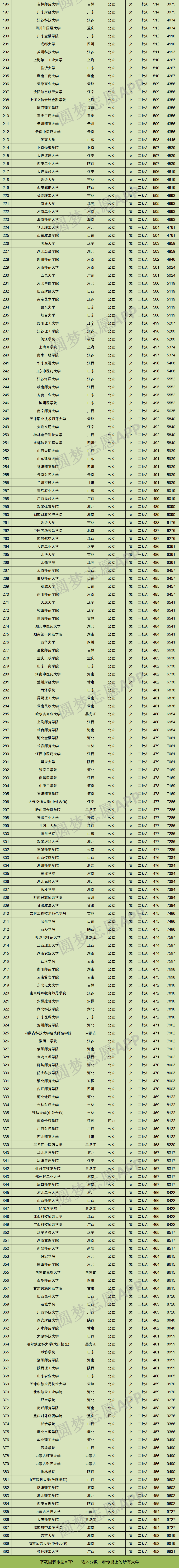 一、吉林高考排名对应学校(全省文科本科前1万名对应大学名单)