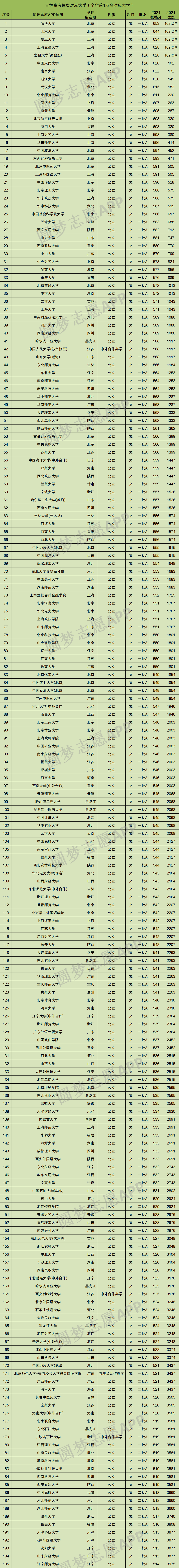 重要提示:由于本文篇幅有限,仅展示吉林文科高考位次在本科前1万名对应的大学名单和分数线,如果你想查看全国所有大学的录取位次及分数,请直接在中Excel表格查阅!