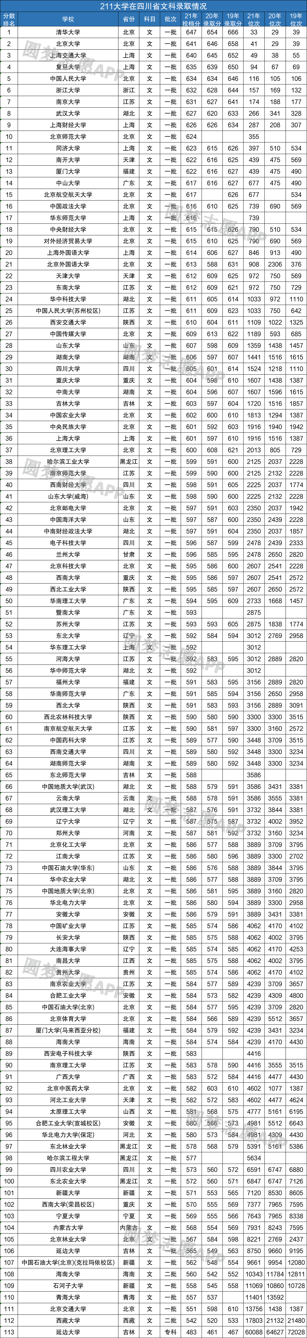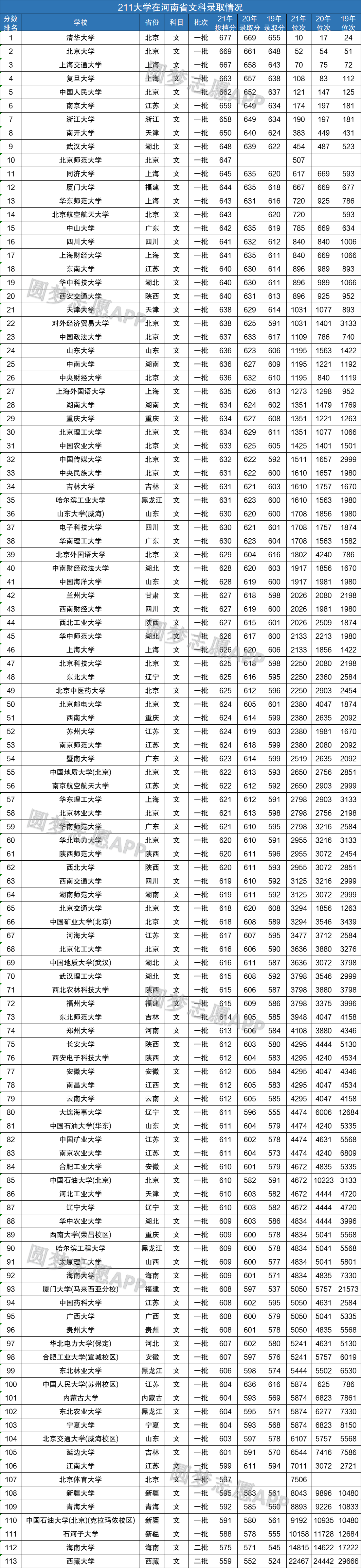由于211大学在各省份的录取分数线不一样,因此小编将以四川、河南、安徽等省份的文科数据为例,以供大家参考: