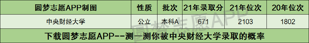 根据上图可知,中央财经大学2021年在天津市本科的录取分数线为671分。