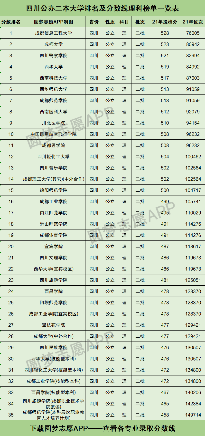 四川公办二本大学排名及2021年理科最低录取分数线一览表汇总,这是四川省2022年高三理科考生需要人手一份的高价值数据。本文将为大家奉上这份名单,希望能借此为大家解答“四川公立二本大学理科有哪些?高考成绩刚过四川理科二本线能读哪些公办大学”等问题。