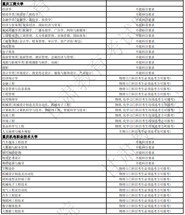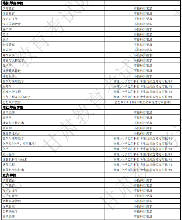 不提科目要求的专业有:法学、社会学类、英语、市场营销、美术学类、设计学类;