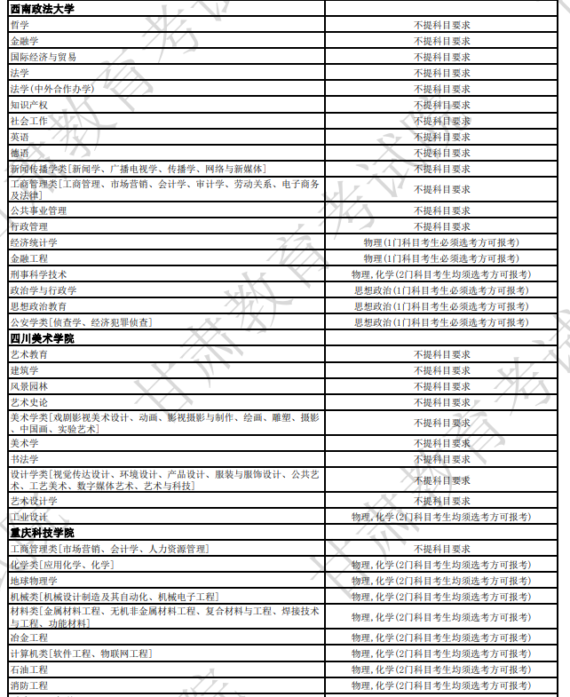 因此,虽然为大家整理的是2024年拟在甘招生的大学选科要求,但其实2024年实行新高考“3+1+2”模式的大部分省份均可参考。由于全国大学数量较多,专业数量也非常庞大,因此下面为大家整理了部分大学的部分专业选科要求: