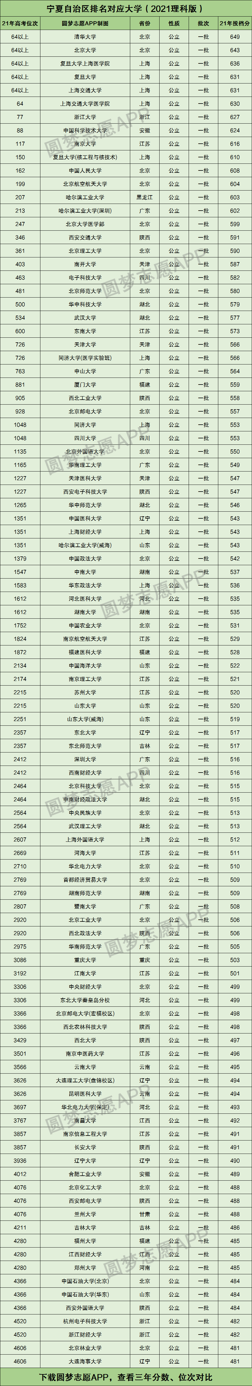 通过这份资料,我们可以清楚知晓2021年宁夏高考理科成绩排在全区前4606名的同学,最终都分别被哪些好大学给录取了!