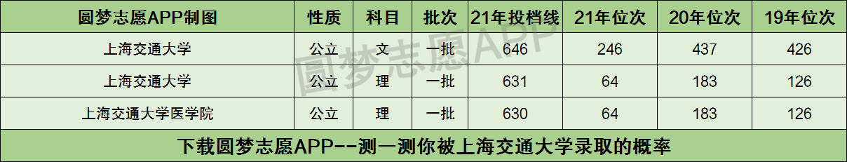 最后,小编也要提醒大家:报考大学时参考大学三年最低位次,只能保证你被上海交通大学录取。但如果你想知晓自己被上海交通大学哪些专业录取的概率比较高的话,那么一定要看自己的高考位次超过了上海交通大学哪些专业三年的位次!(手机应用市场,可查看全国所有大学及专业近三年的录取分数线和位次,测一测你被目标大学录取的概率是多少!)