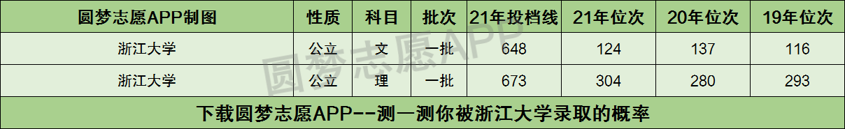 最后,小编也要提醒大家:报考大学时参考大学三年最低位次,只能保证你被浙江大学录取。但如果你想知晓自己被浙江大学哪些专业录取的概率比较高的话,那么一定要看自己的高考位次超过了浙江大学哪些专业三年的位次!(手机应用市场,可查看全国所有大学及专业近三年的录取分数线和位次,测一测你被目标大学录取的概率是多少!)
