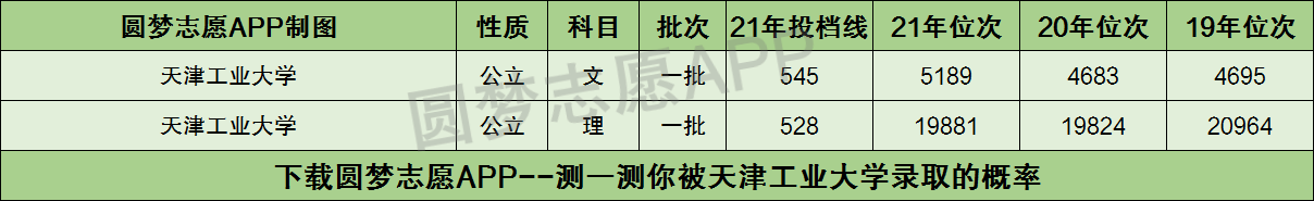 最后,小编也要提醒大家:报考大学时参考大学三年最低位次,只能保证你被天津工业大学录取。但如果你想知晓自己被天津工业大学哪些专业录取的概率比较高的话,那么一定要看自己的高考位次超过了天津工业大学哪些专业三年的位次!(手机应用市场,可查看全国所有大学及专业近三年的录取分数线和位次,测一测你被目标大学录取的概率是多少!)