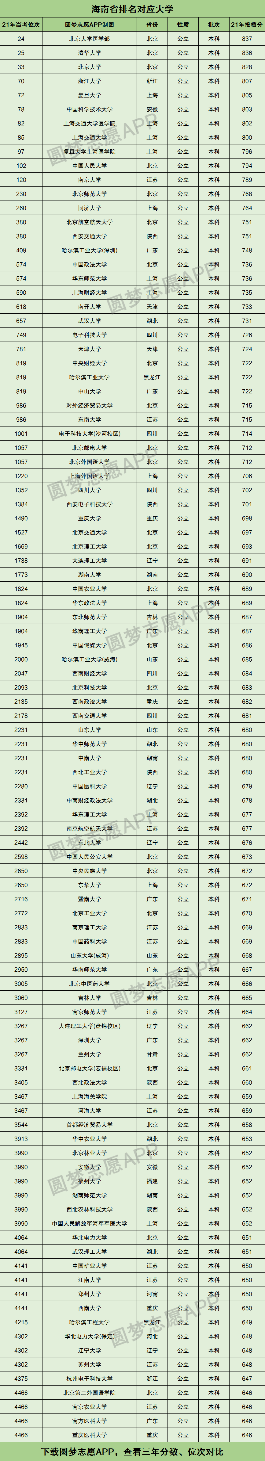 海南省高考排名对应的大学名单、海南省各大学2021年录取位次等资料,均是2022年高三考生择校时所需的高价值数据。本文为同学们整理出了2021年海南省高考排位与大学录取分数线对应表,建议同学们收藏!