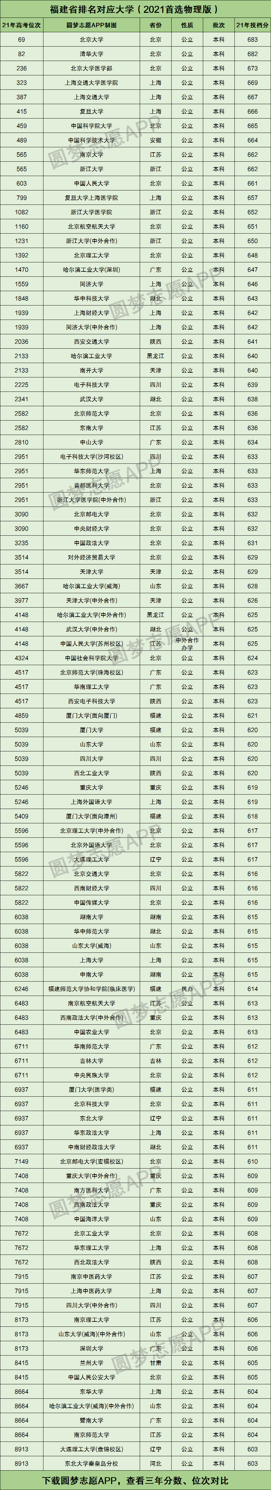 一、福建省排名对应大学(首选物理版)