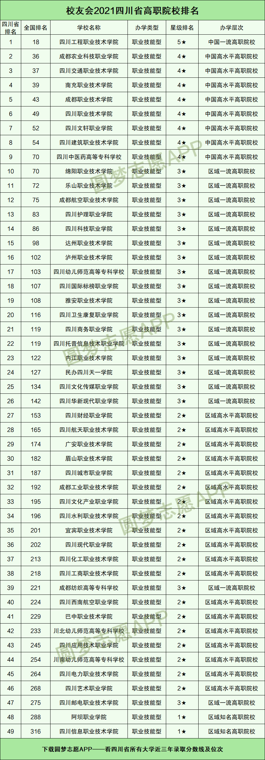 一、四川省排名前十的专科学校名单