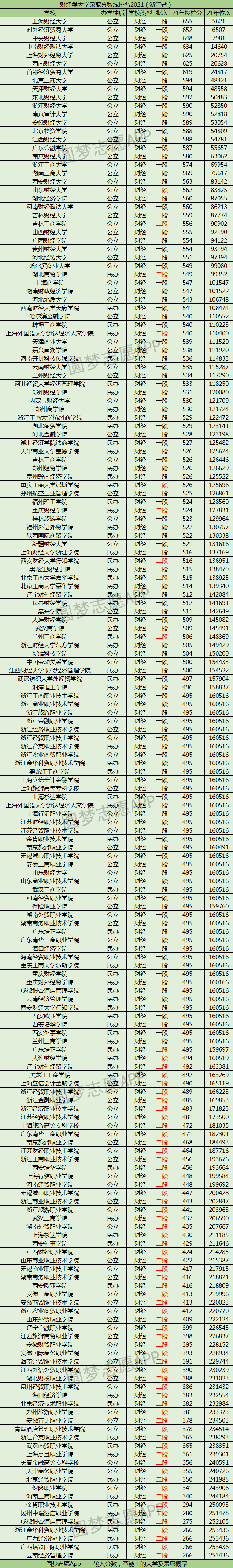 下面是全国财经大学在浙江省录取分数线排名表2021,想了解更多省份财经类大学录取分数线排名的考生,可前往。文末有图片数据的表格链接,有需要的同学可保存以便下次查看。