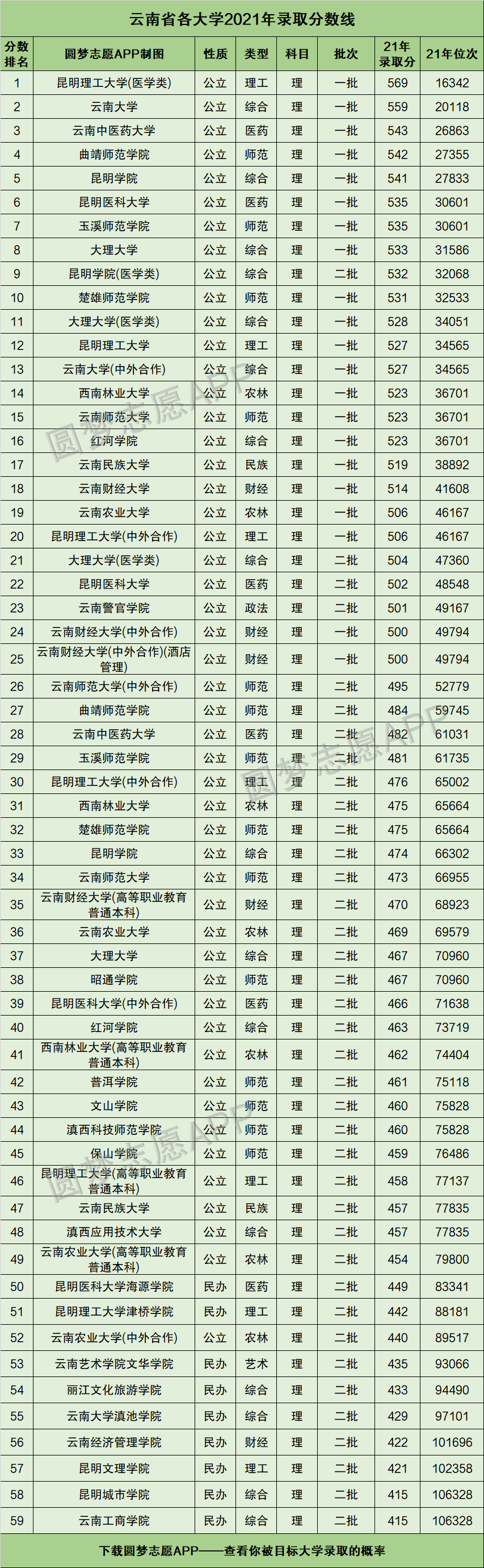 一、云南省各大学2021年录取分数线(理科)