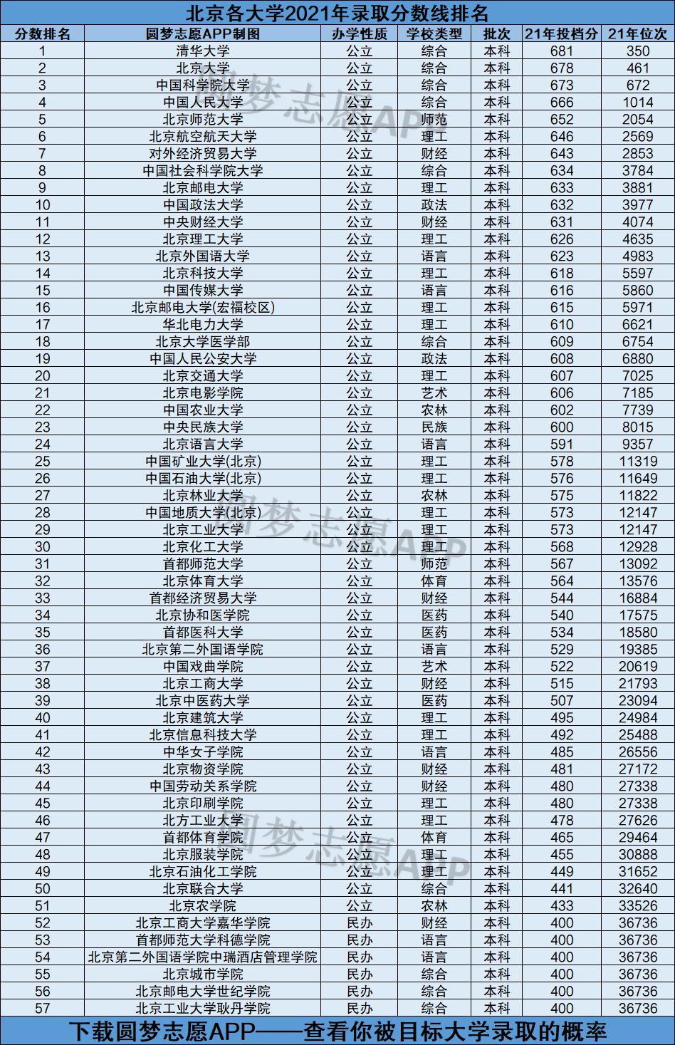 北京内各个大学2021年最新录取分数线排名,是每一位北京即将参加2022年高考的同学所必备的资料。本文将为大家奉上这份数据,希望北京内的每一位高三同学都能圆梦大学、被北京内的好大学录取!