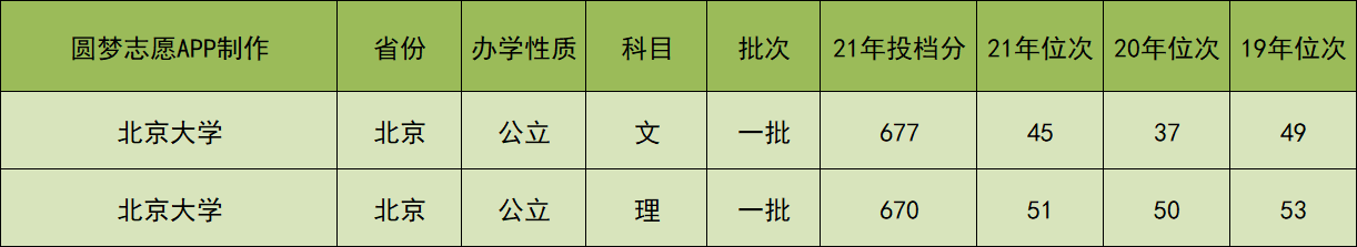 根据上图可知,北京大学2021年在贵州省文科的投档分数线为677分,理科的投档分数线为670分。
