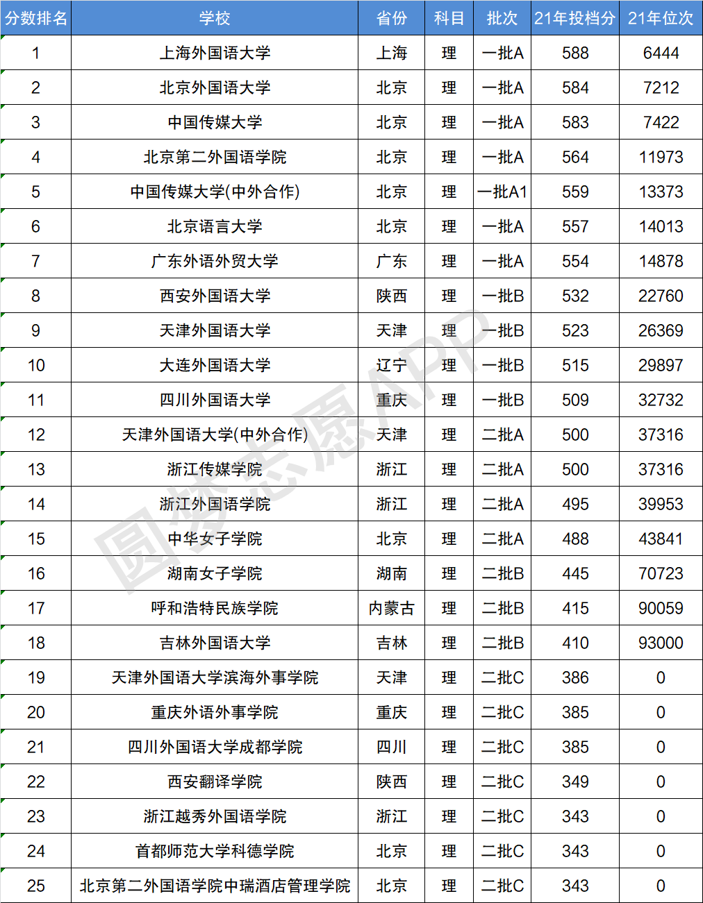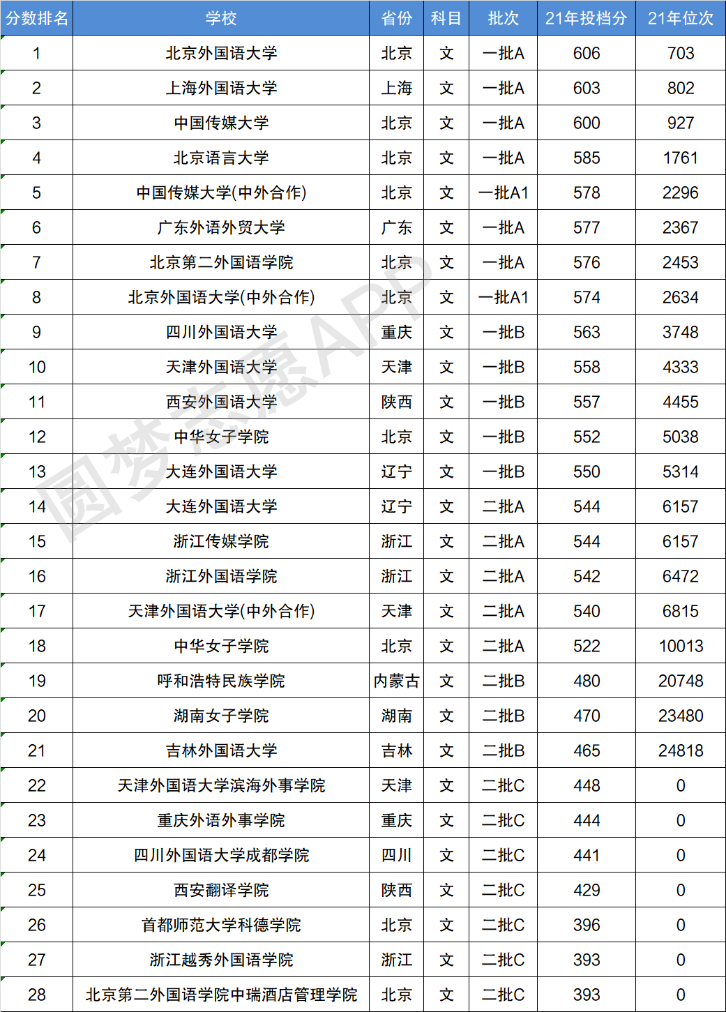二、语言类大学排名和录取分数线汇总