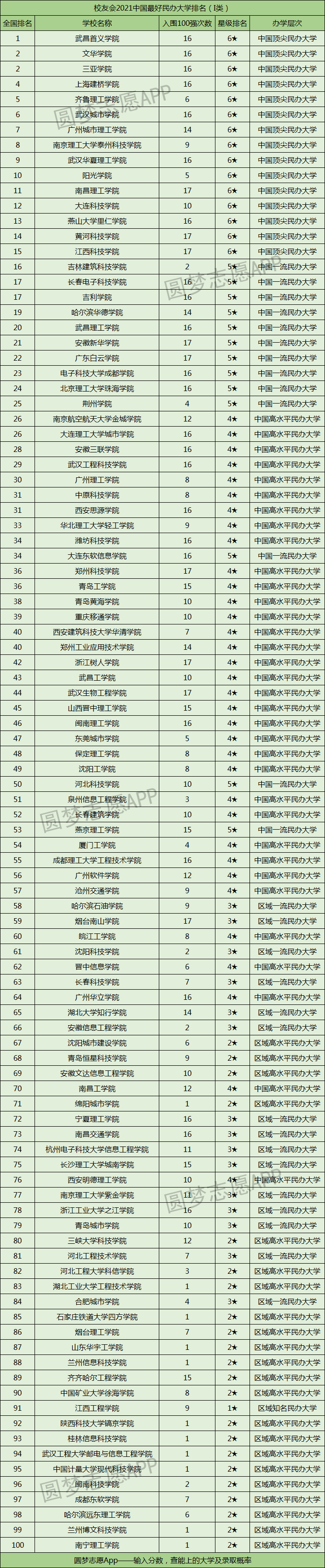 2021年哪些民办高校跻身全国前一百强?本期老师为大家整理了软科和校友会两个大学排行榜的全国民办学校百强名单2021,大家可参考。