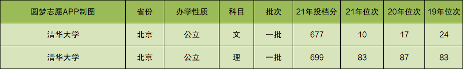 根据上图可知,清华大学2021年在河南省文科的投档分数线为677分,理科的投档分数线为699分。