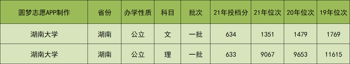 根据上图可知,湖南大学2021年在河南省文科的投档分数线为634分,理科的投档分数线为633分。