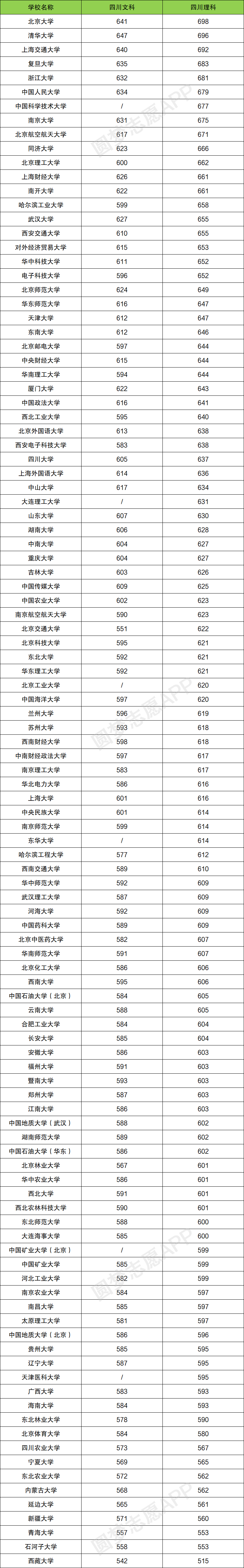 注意:上表不含中央音乐学院、国防科技大学、空军军医大学、海军军医大学和陕西师范大学的分数线。
