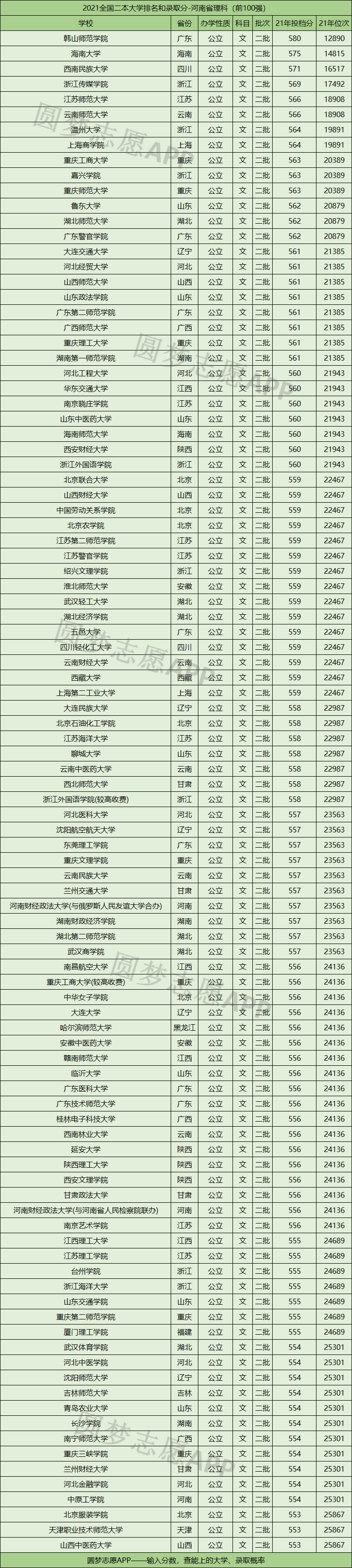 下面是2021全国二本大学录取分数线排名前100强高校一览表(文科),完整榜单可在文末: