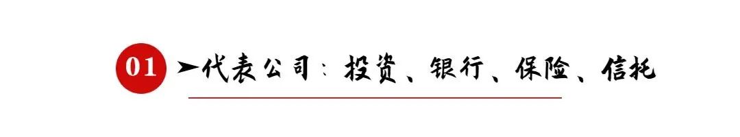 金融类央企大致有投资、银行、保险、信托等种类,如中国投资有限责任公司、中国中信集团公司、中国人寿保险集团公司、中国东方资产管理公司、中诚信托有限责任公司、中国科技证券有限责任公司、中国银行等银行。