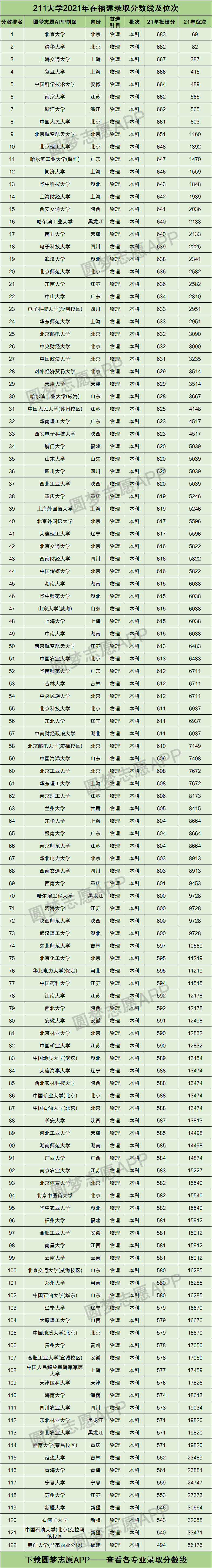 其中,在福建首选物理录取位次最高的一所211大学为:北京大学。只有福建省首选物理高考排名在69名以上的考生才有机会被这所大学录取。