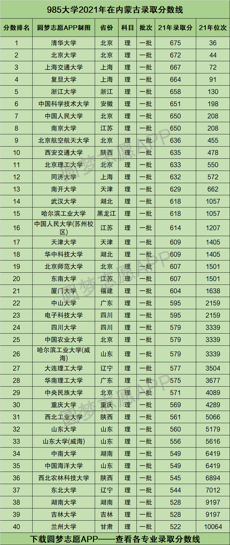“内蒙古多少名能上985?2022内蒙古高考排名多少可以上985大学?各个985大学在内蒙古的录取分数线是多少?”