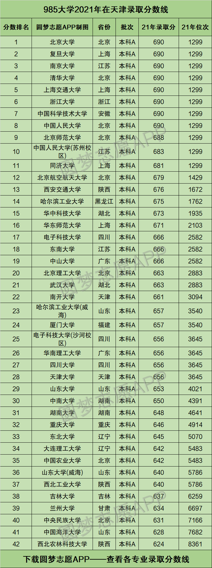 本文将为大家奉上全国所有985大学2021年在天津市的录取分数线及位次排名,希望能帮助天津市想要读985的同学成功拿到录取通知书!