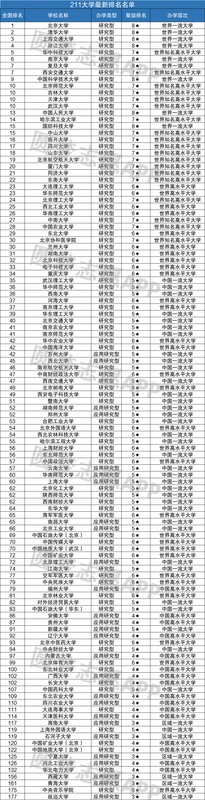 一、中国211大学排名表最新排名