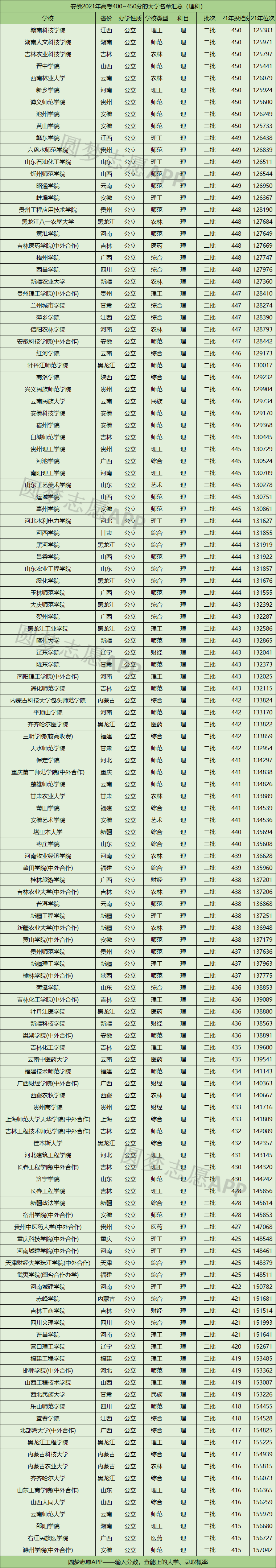 2021年在安徽文科400~450分录取的均是专科大学,本文暂不整理。